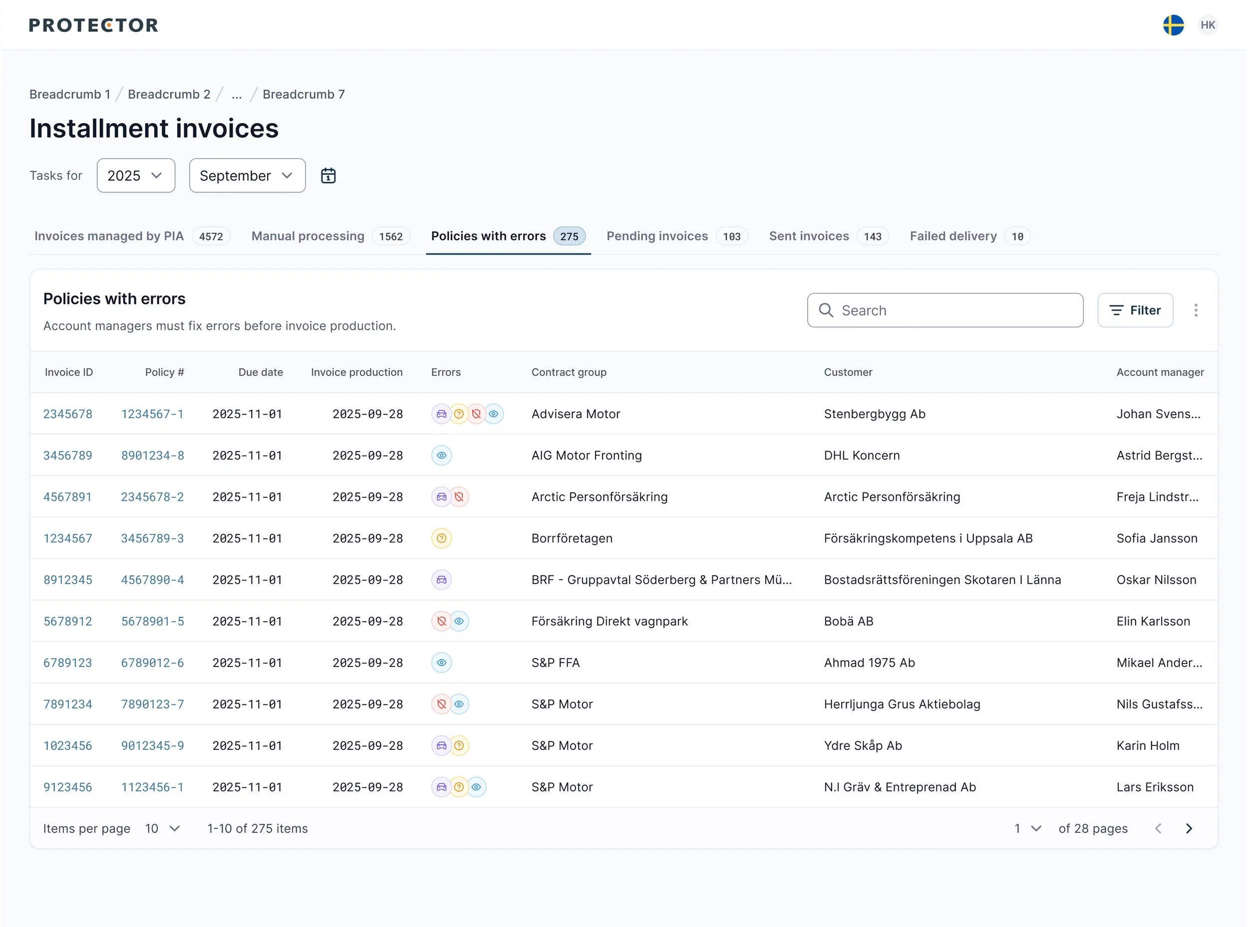 For Protector, Sweden is one of the largest markets for vehicle insurance and the most invoices per month out of any market. The existing system’s inefficient and entirely manual processes of prepping, error handling, and delivering invoices led to delays, errors, increased workload, and low morale. It was not a sustainable nor scalable process.